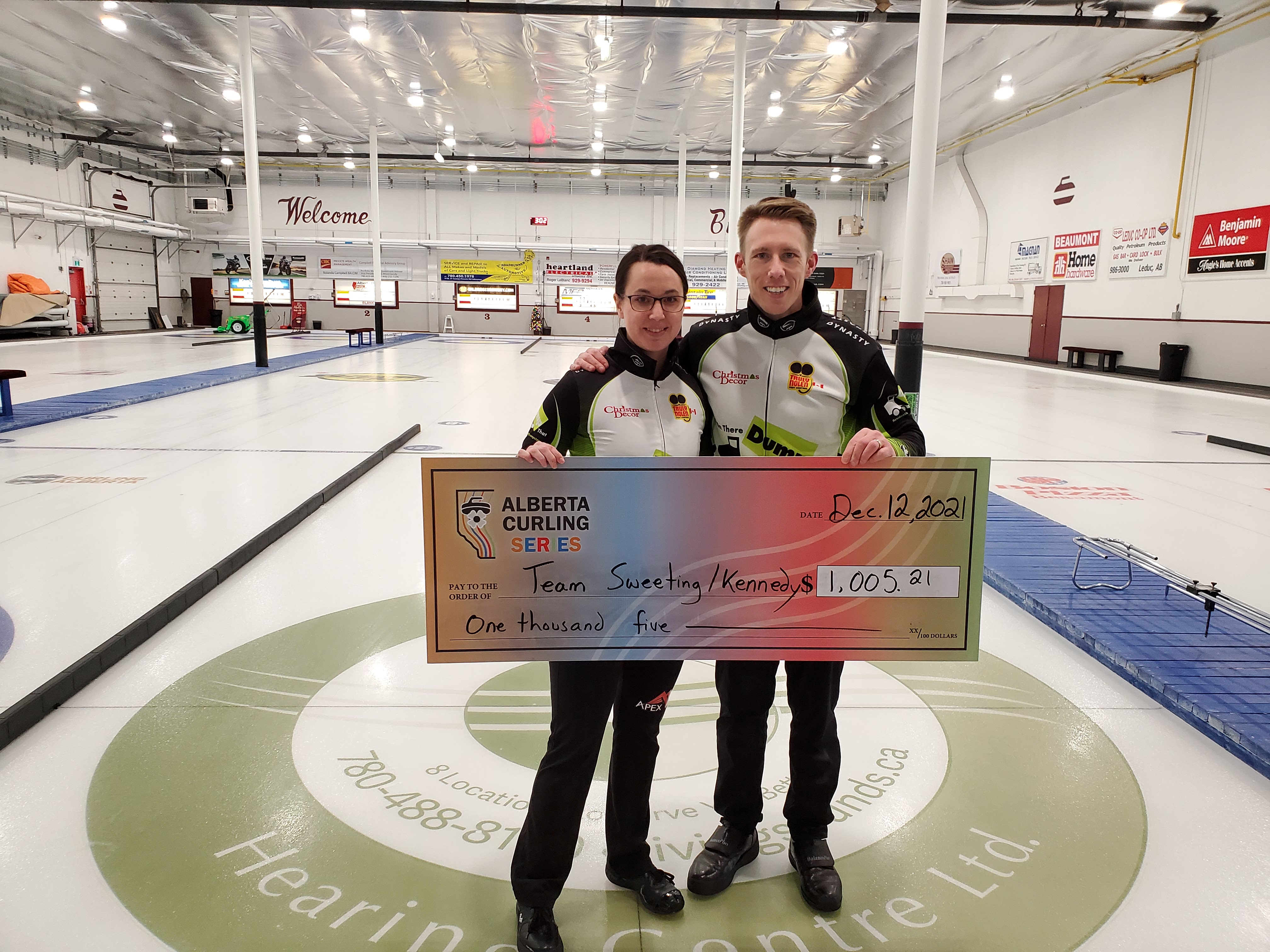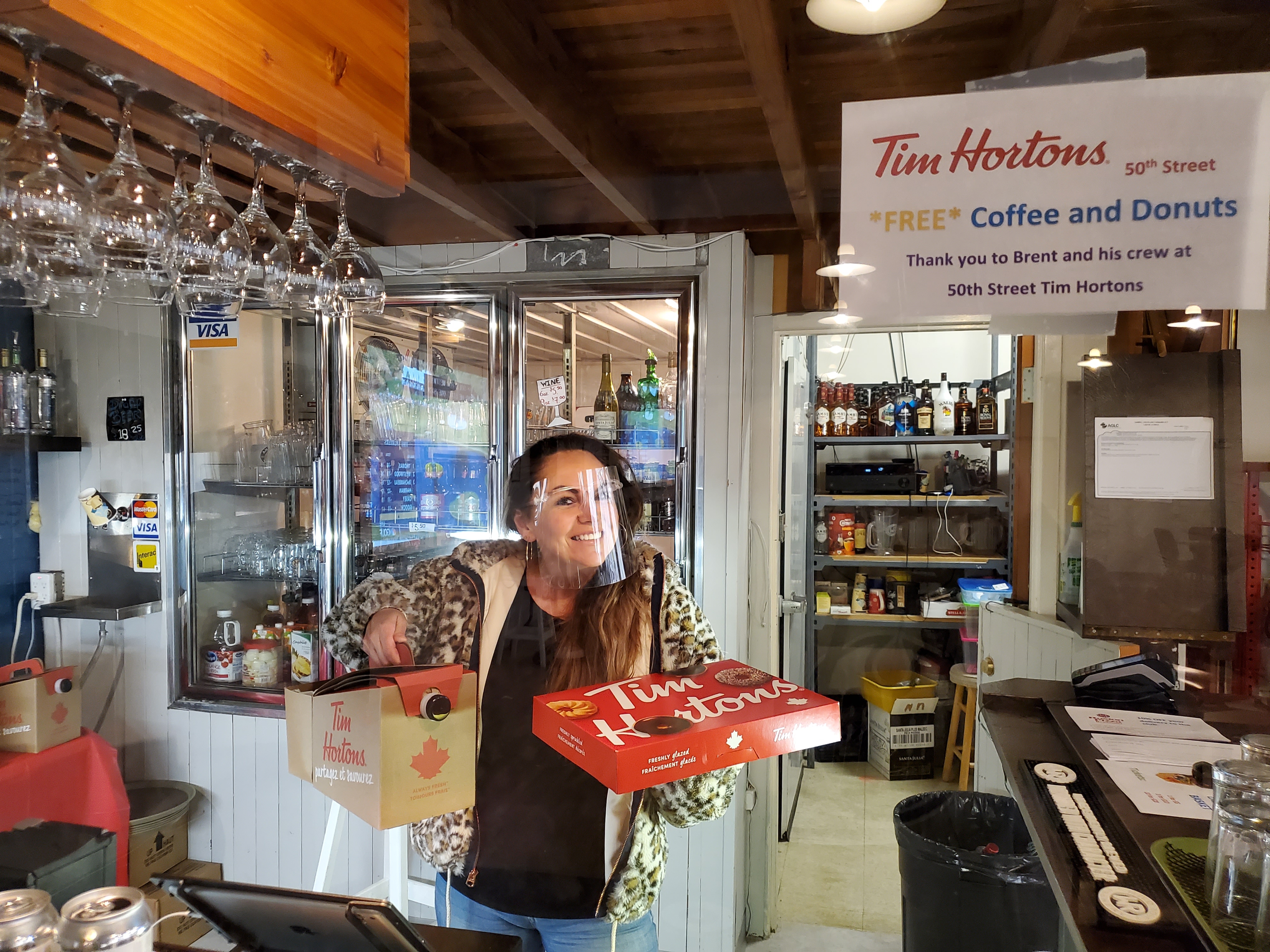 When a curler makes a DOUBLE TAKEOUT, they grab the Tim Hortons Double Double board and places it behind their sheet. If they still have that board by the end of the night (as long as no one else made a DOUBLE TAKEOUT and stole it), they go home with a Tim Hortons gift card, courtesy of the 50th Street Tim Hortons here in Beaumont!
