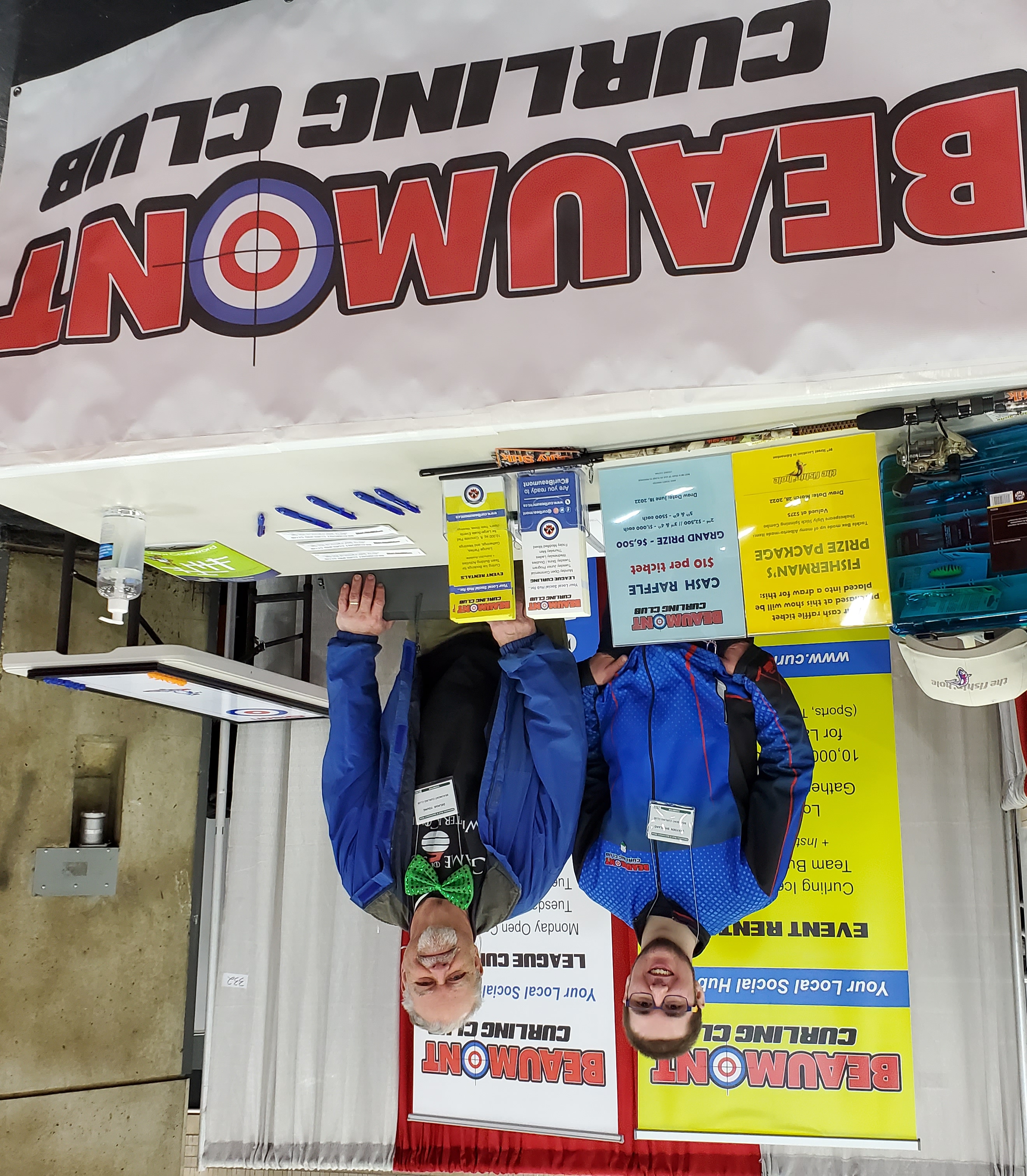 When a curler makes a DOUBLE TAKEOUT, they grab the Tim Hortons Double Double board and places it behind their sheet. If they still have that board by the end of the night (as long as no one else made a DOUBLE TAKEOUT and stole it), they go home with a Tim Hortons gift card, courtesy of the 50th Street Tim Hortons here in Beaumont!